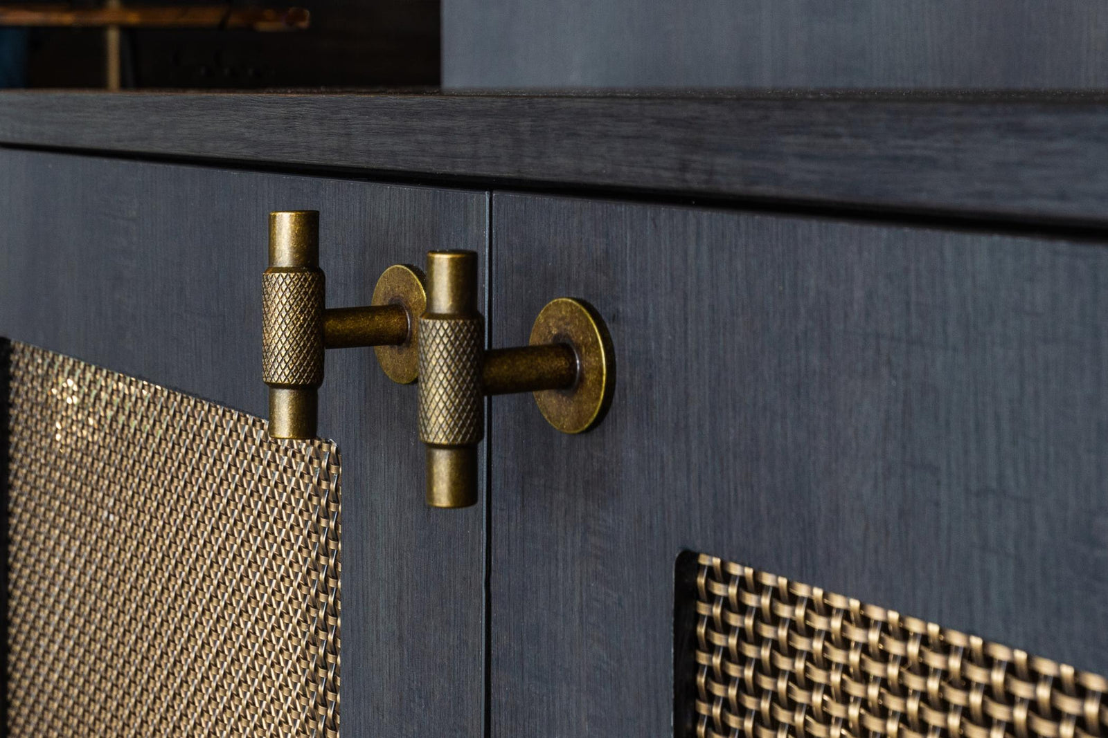Designer, Trace Beaumont-Orr, further complimented this industrial vibe with the strong linear T-shaped cabinet knobs. This refined quality is emphasised by the ever-popular knurled style. The slightly distressed, weathered finish of the hardware gives it a sense of timelessness. It’s this kind of thoughtful detail that so beautifully pairs with the wire mesh. The resulting ambiance boasts an inviting vibe that encourages guests to stay a while.