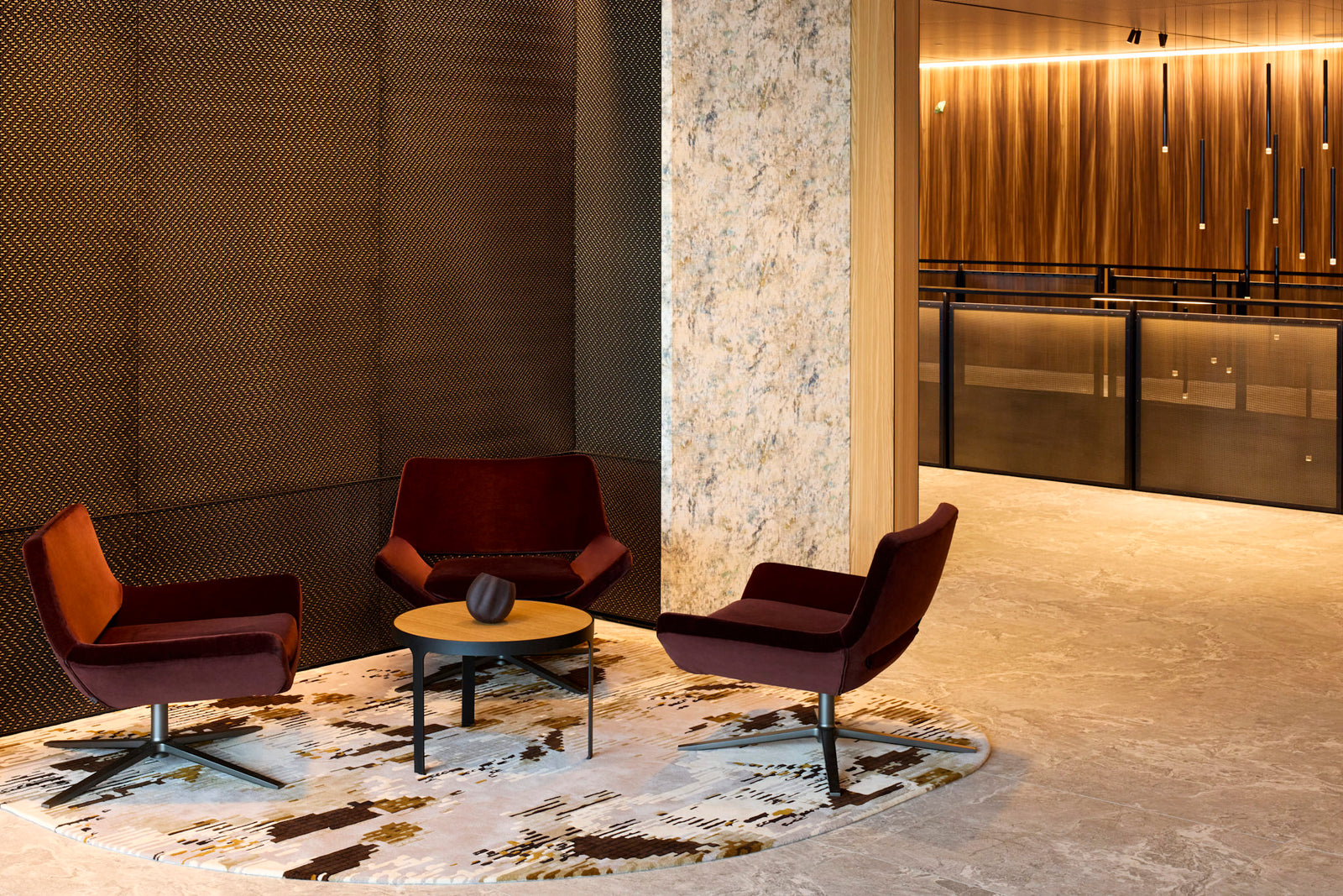This rich environment lends itself to the important work completed by one of New Zealand’s largest and most successful law firms. With a refined aesthetic throughout, the use of Archant’s exclusive Wovenpanel® wire mesh was an integral addition to the layout. Four specific areas were exquisitely brought to life with this unique decorative surface.