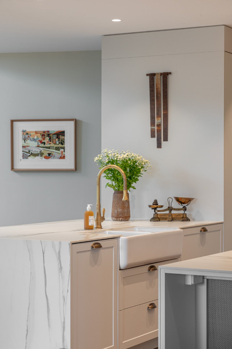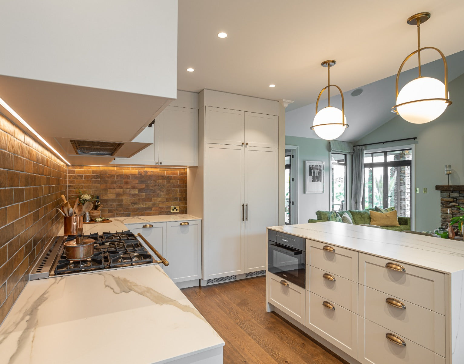 In this outstanding space Kitchen’s on Highbrook have embraced the modern simplicity of handle-free aesthetics with our Oak Lacquered Inca while using our oak lacquered Lago the full height cupboards to make a bold design statement. These timber elements transform the space into a modern, streamlined, and clutter-free haven, with a natural warmth that only timber will do.