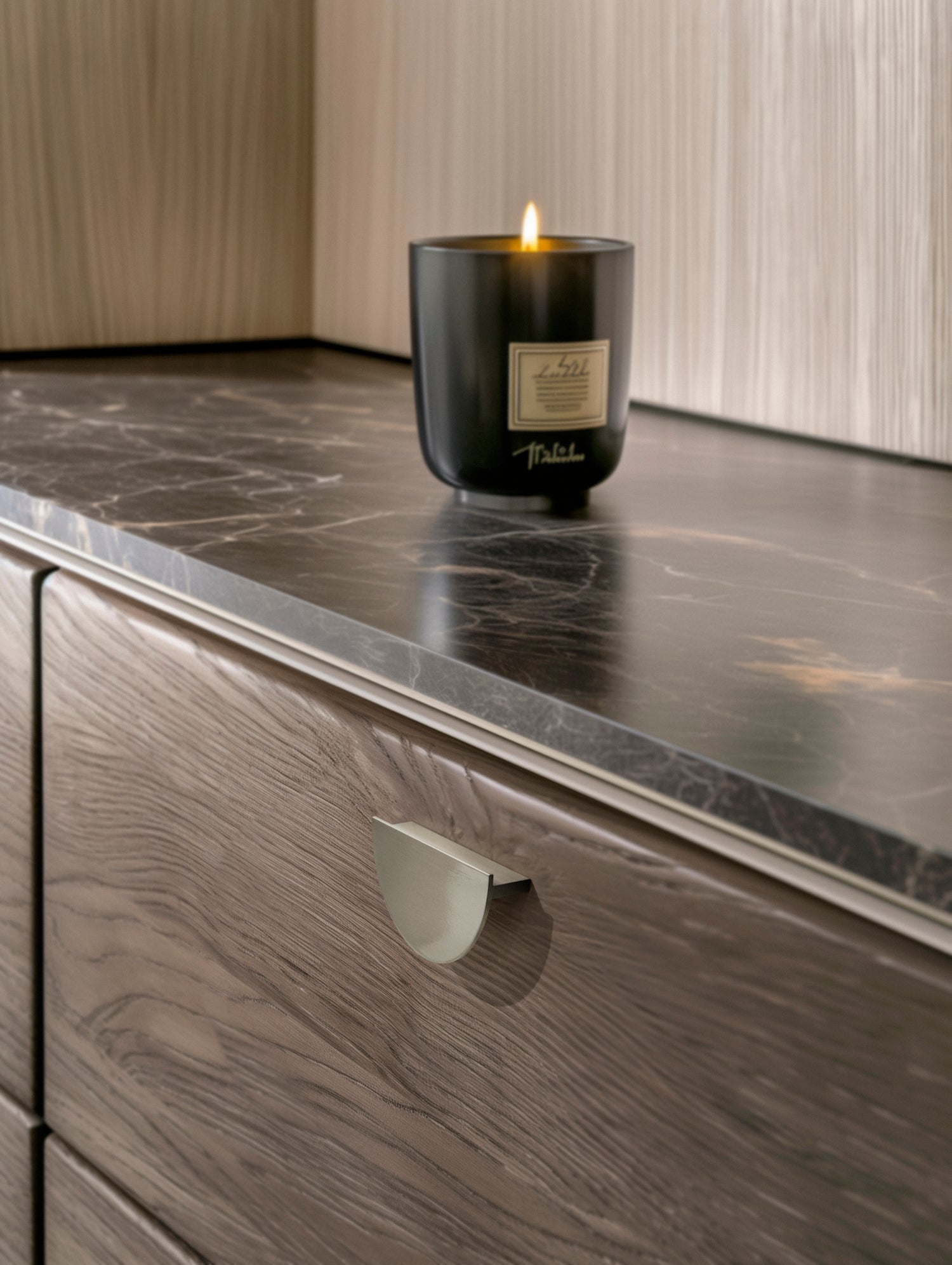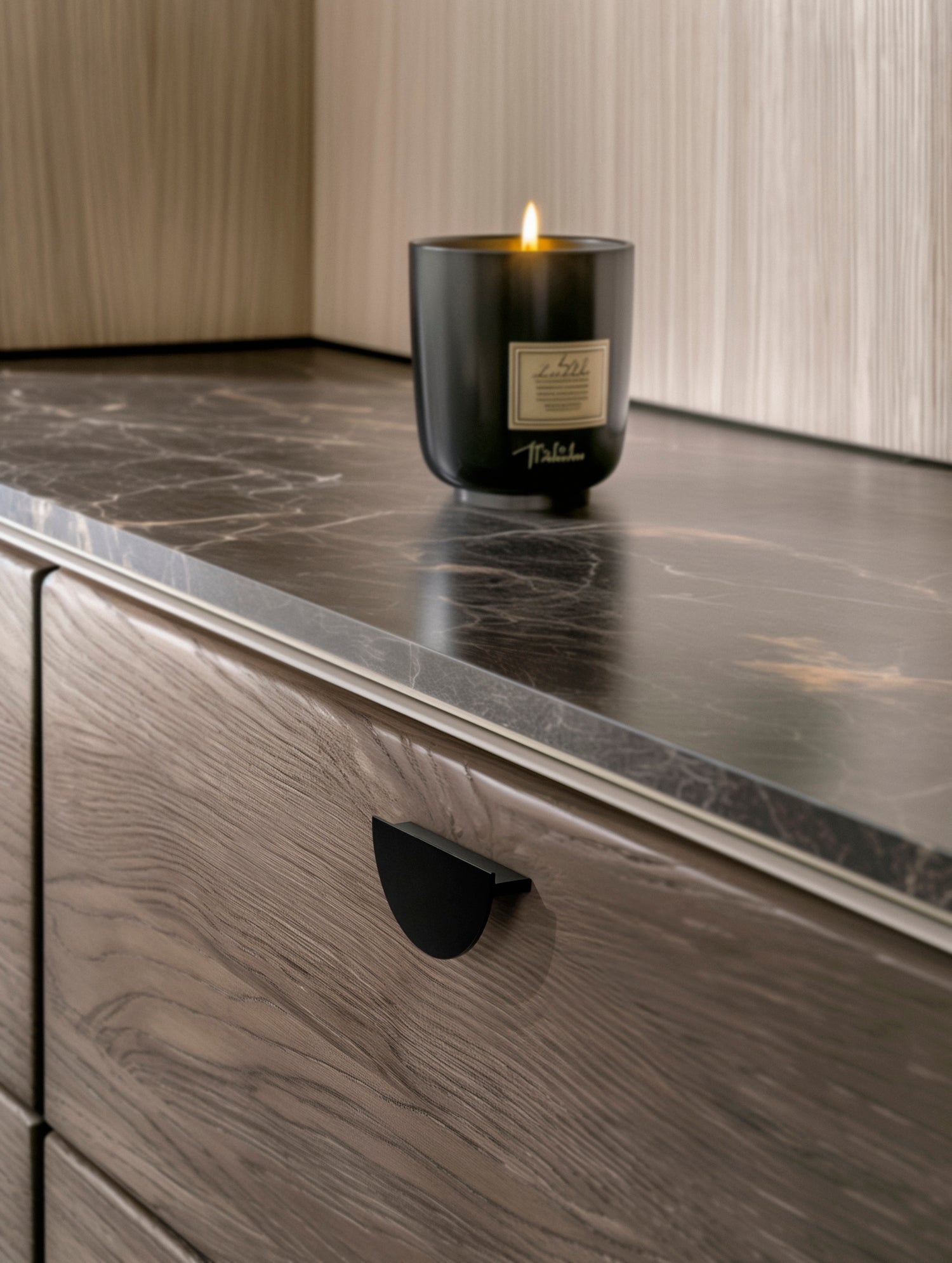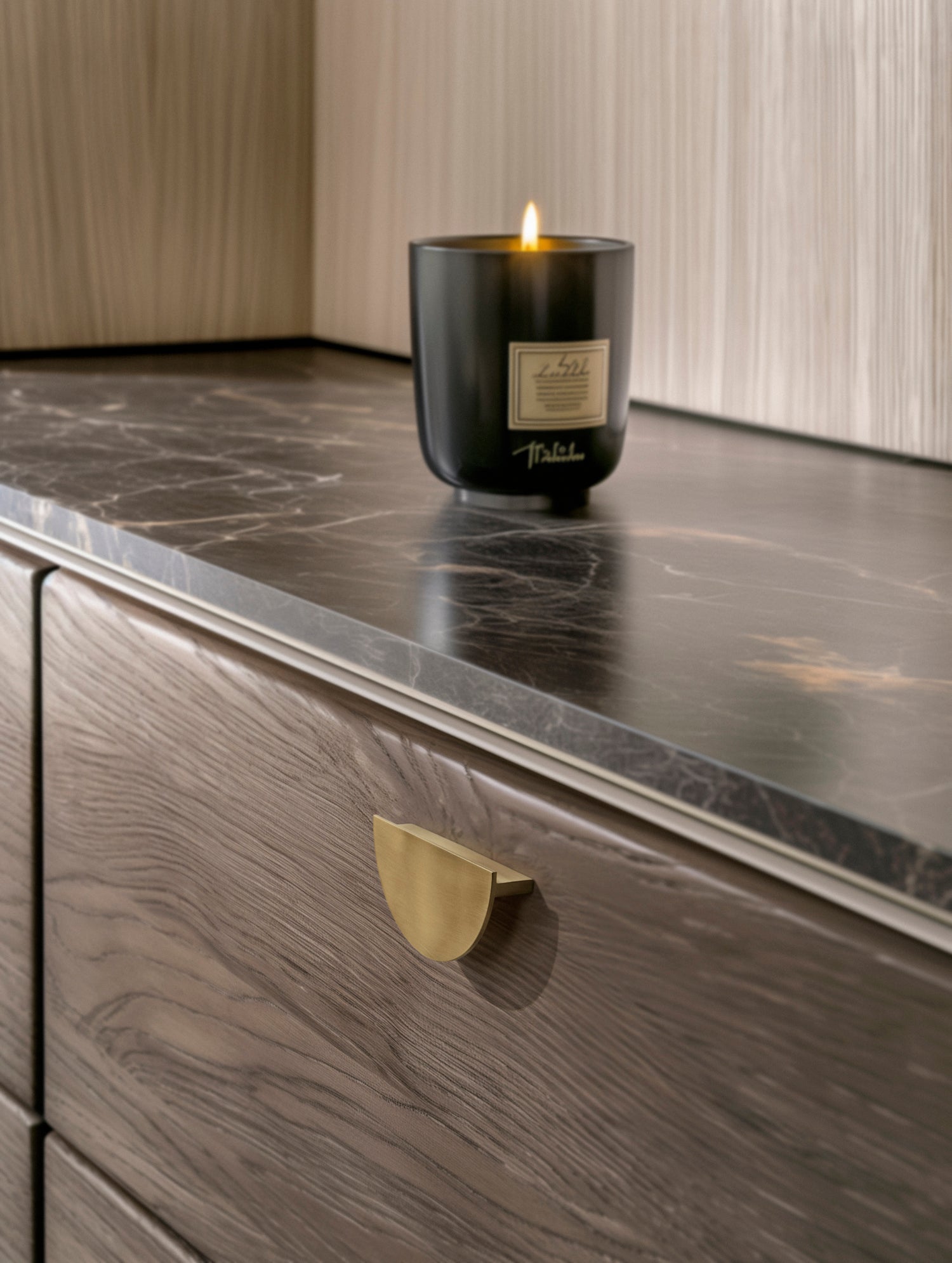 Embrace the subtle elegance of the Duo, a half-moon handle designed to complement the clean lines of a contemporary kitchen. Its unique shape allows for creative expression – use them in pairs for a striking full-moon effect, or individually for a minimalist touch. The Duo's understated beauty shines in three versatile finishes: Brushed Nickel for a warm, inviting glow, Brass for a touch of timeless luxury, and Black for a bold, modern statement. Available in three sizes, you can find the perfect fit for any cabinet or drawer. Embrace the versatility of the Duo and create a kitchen that reflects your unique style.